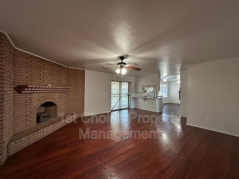 3/2/2 with 2 living rooms and a cozy fireplace, open-concept kitchen and dining area, and tile flooring throughout for easy maintenance. Faux wood blinds offer both style and privacy in every room. The hall bathroom includes double sinks, a separate shower, and a relaxing garden tub—perfect for busy mornings or evening unwinds. Conveniently located with quick access to I-35W, making commutes and travel a breeze.