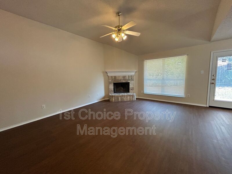 Charming 3/2/2 home features a cozy fireplace and an open layout perfect for entertaining. The kitchen includes a bar that overlooks both the living and dining rooms, creating a warm and connected atmosphere.Freshly painted throughout, the home also boasts new vinyl plank flooring for a clean, modern look. The bedrooms are split for added privacy, and the primary suite includes a double vanity, separate shower, and soaking tub. Located near parks and schools, this home offers both comfort and convenience — ready for you to move right in!