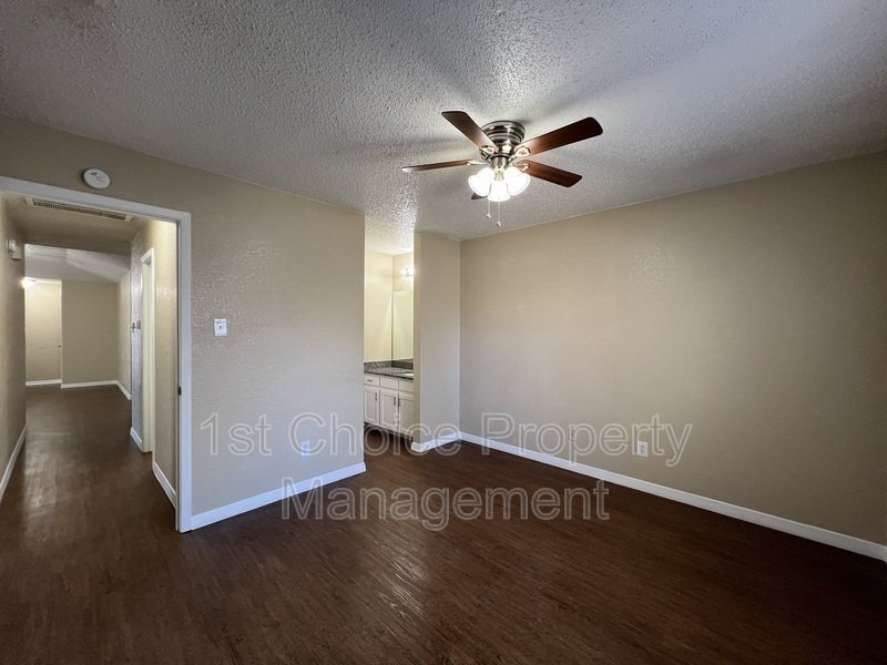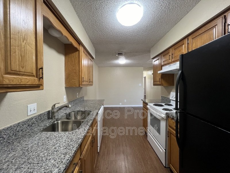 Two Bedroom, One bath duplex with granite counter tops countertops and vinyl plank flooring throughout. Master bedroom with a walk-in closet. Full size washer and dryer connections, covered patio. One car garage. Private fenced backyard.